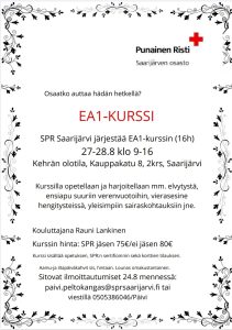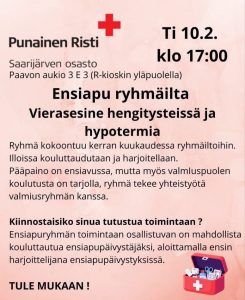 Saarijärven ensiapuryhmän ryhmäilta jälleen 24.3 klo18 SPR:n toimistolla, Paavonaukio 3, Saarijärvi.