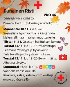 marita.salokivi@sprsaarijarvi.fi tai tekstiviestillä: 050-3032582
