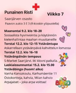 Ystäväntupa avoinna 03.04.2025 klo 12-15 Paavonaukio 3 E.