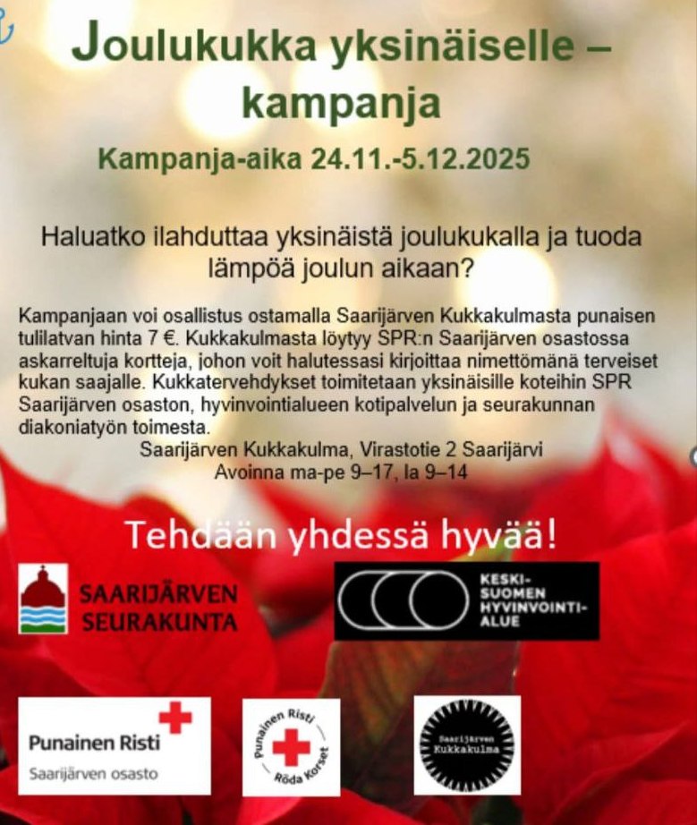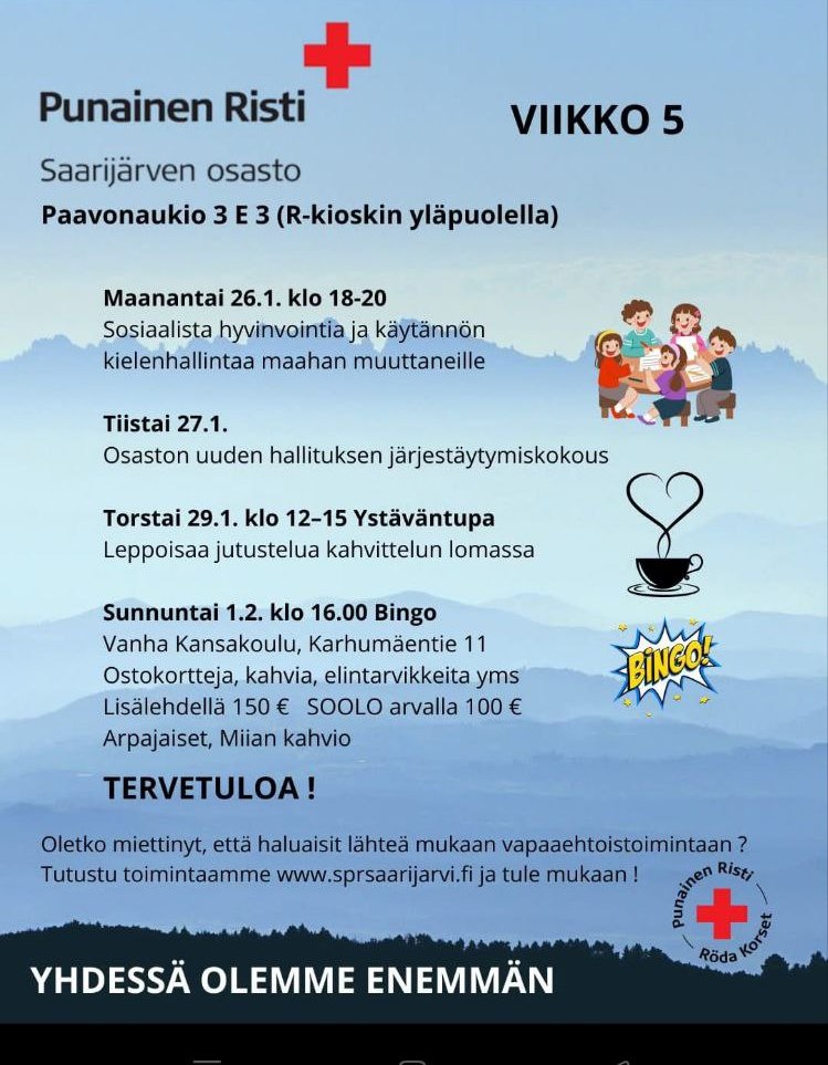 marita.salokivi@sprsaarijarvi.fi tai tekstiviestillä: 050-3032582
